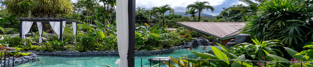 Enjoy natural hot springs, gourmet dining, spa services, breathtaking views of Arenal Volcano.